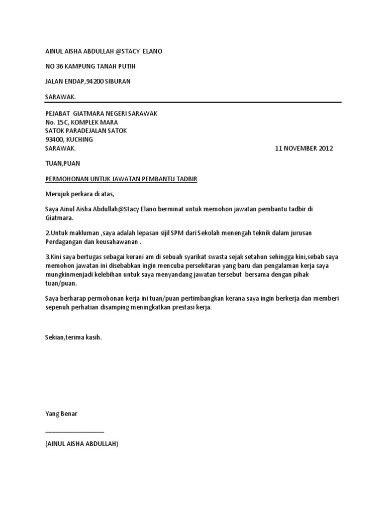 Contoh Surat Memohon Kerja Pdf