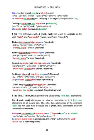Turkish Infinitives And English Gerunds Or Infinitives Signed